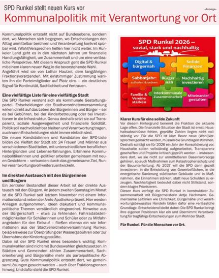 Mit dem Blick auf das neue Jahr möchten wir Ihnen Mut machen. 2025 bringt neue Chancen und Möglichkeiten, unsere Heimat weiter zu gestalten und Herausforderungen gemeinsam zu meistern. Lassen Sie uns mit Vertrauen und Optimismus nach vorne schauen – für ein starkes, gerechtes und solidarisches Runkel.